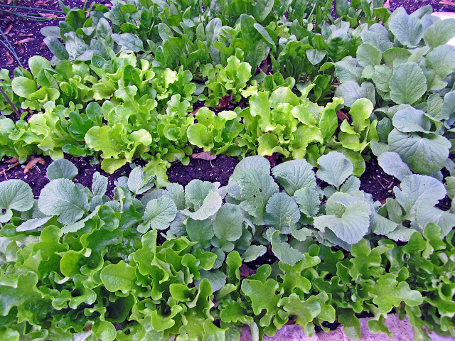 The radish tops have grown back from the rabbit forage.
